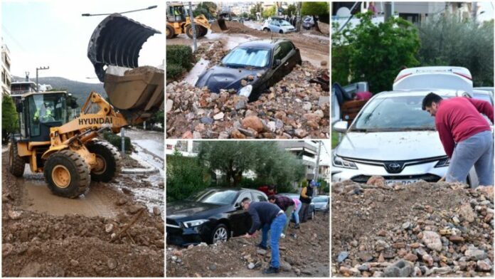 Η σφοδρή κακοκαιρία που έπληξε την Αττική άφησε πίσω της εικόνες αποκάλυψης, με την Άνω Γλυφάδα να είναι στο επίκεντρο της καταστροφής. Οι φωτογραφίες από την περιοχή καταγράφουν τη δύναμη των χειμάρρων, οι οποίοι μετέτρεψαν τους δρόμους σε ποτάμια γεμάτα λάσπη, πέτρες και φερτά υλικά.
