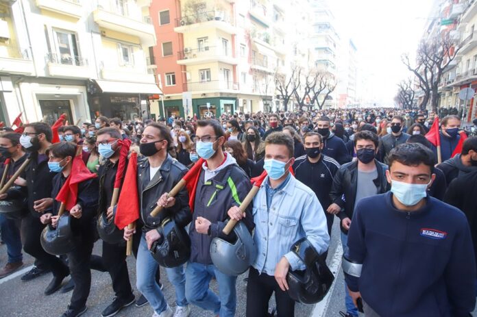 Διαμαρτυρία είναι σε εξέλιξη από φοιτητές στο κέντρο της Θεσσαλονίκης.