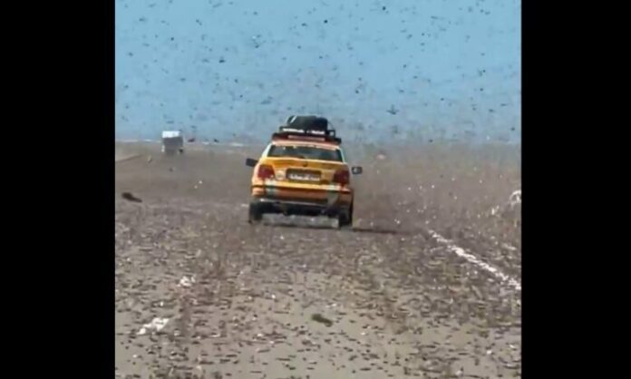 Οδηγοί σε έναν αυτοκινητόδρομο στην έρημο της Δυτικής Σαχάρας βρέθηκαν μπροστά σε ένα απρόσμενο εμπόδιο: ένα τεράστιο σμήνος ακρίδων που είχε κατακλύσει τον δρόμο. Βίντεο που έχει καταγραφεί δείχνει αυτοκίνητα να διασχίζουν το πυκνό κύμα των εντόμων, καθώς χιλιάδες ακρίδες ορμούν πάνω σε διερχόμενα οχήματα, δημιουργώντας εντυπωσιακές αλλά και ανησυχητικές εικόνες.