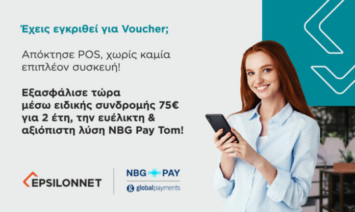 Η καινοτόμος λύση NBG Pay tom, αποτέλεσμα της συνεργασίας της NBG Pay με την υποστήριξη της Εθνικής Τράπεζας και του Ομίλου EPSILONNET, είναι πλέον διαθέσιμη μέσω του προγράμματος «Ψηφιακές Συναλλαγές – Β’ Φάση» του Εθνικού Σχεδίου Ανάκαμψης και Ανθεκτικότητας «Ελλάδα 2.0». Οι δικαιούχοι της Κατηγορίας 1 του προγράμματος έχουν τη δυνατότητα να αποκτήσουν αυτή τη λύση με πλήρη επιδότηση.