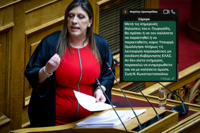 Η Ζωή Κωνσταντοπούλου εντείνει την αντιπαράθεσή της με τον Άδωνι Γεωργιάδη, εξαπολύοντας νέα επίθεση μέσω μιας εκτενούς ανάρτησης. Στην ανάρτησή της, ζητάει ακόμη και παραιτήσεις, με αφορμή τις δηλώσεις του υπουργού Υγείας στη Βουλή, ο οποίος ανέφερε ότι ενημερώθηκε από αστυνομικό για τη μήνυση που έχει καταθέσει η πρόεδρος της Πλεύσης Ελευθερίας εναντίον του.