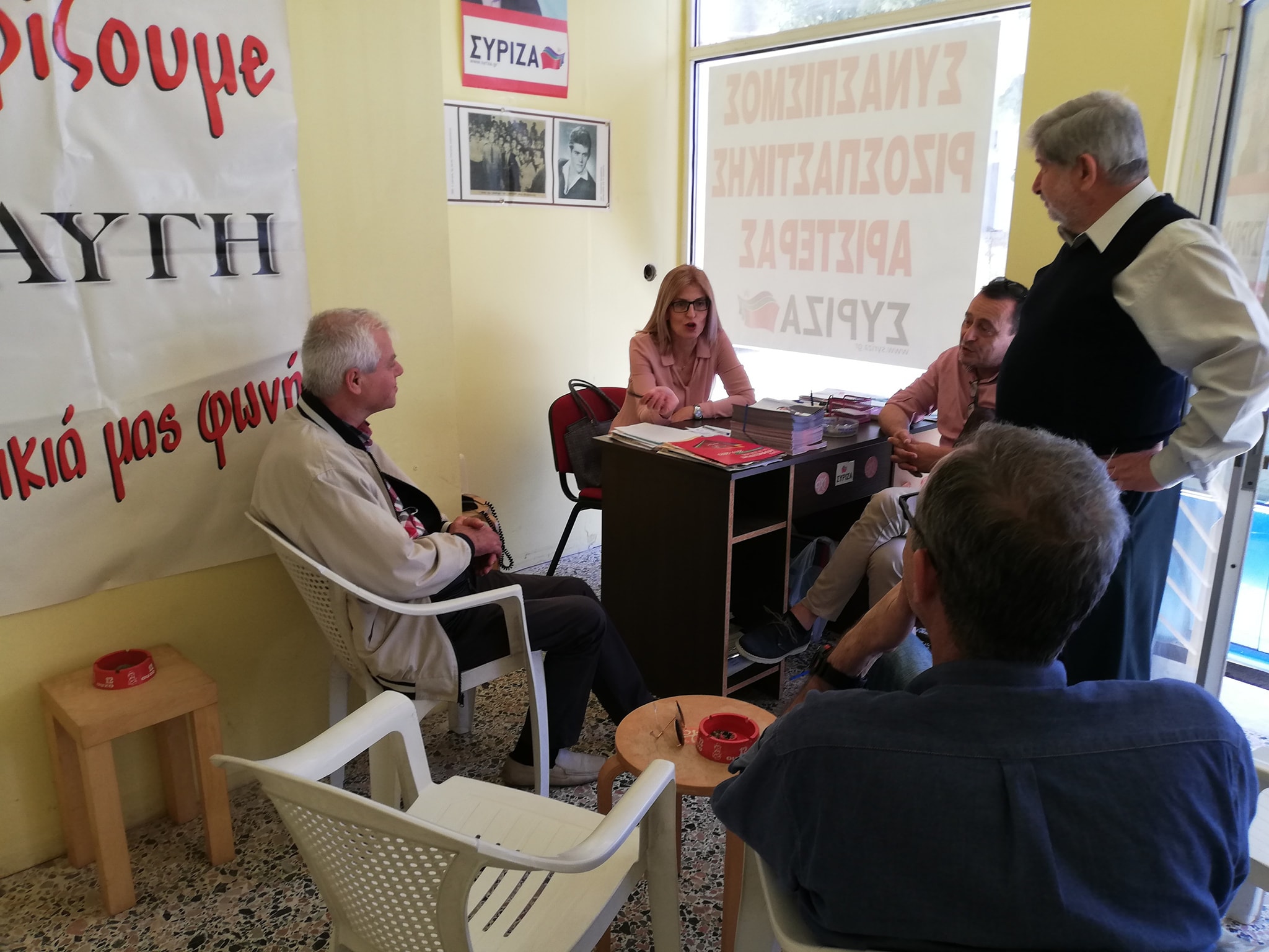 Επιπλέον, βρέθηκε στα γραφεία της Ο.Μ Λαγκαδά του ΣΥΡΙΖΑ, και αφού συζήτησε με τα μέλη, συνέχισε μαζί τους την εξόρμηση στην περιοχή.